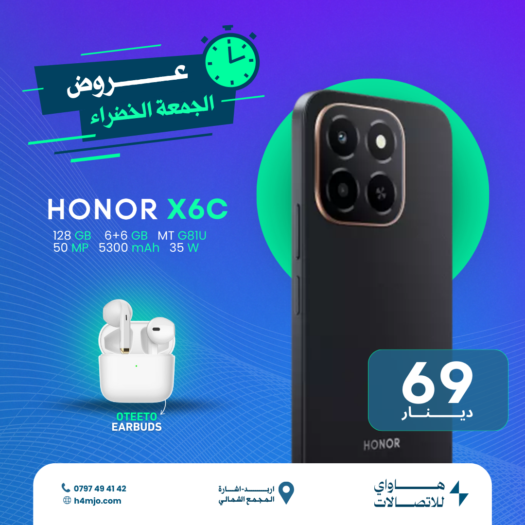 #HONORX6C #هونر #هواتف_ذكية #أداء_خارق #عروض_خاصة #الأردن #جديد #ساعة_ذكية #هدايا #تكنولوجيا #ذكي_وسريع #عرض_محدود