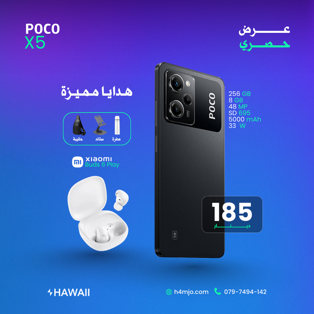لا تفوت الفرصة واحصل على هاتف POCO X5 الجديد، الذي يجمع بين القوة والأداء السلس في جهاز واحد! 🚀