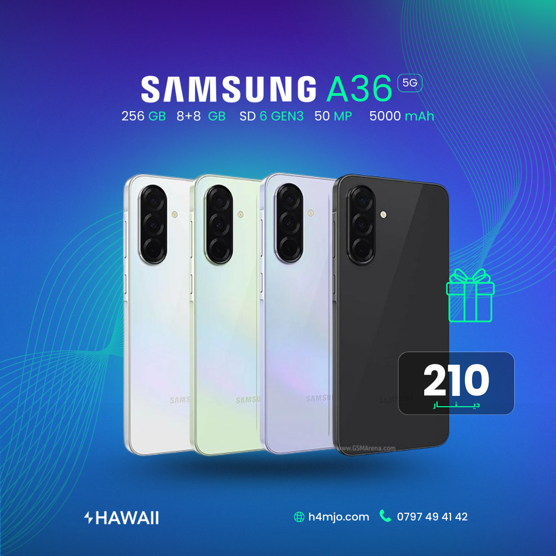 لا تفوّت فرصة امتلاك هاتف سامسونج A36 5G بأعلى المواصفات، المتوفر الآن بسعر 210 دينارًا فقط! ✨ هذا الجهاز مصمم ليلبي احتياجات المستخدمين الأكثر تطلبًا بفضل مواصفاته الجبارة: