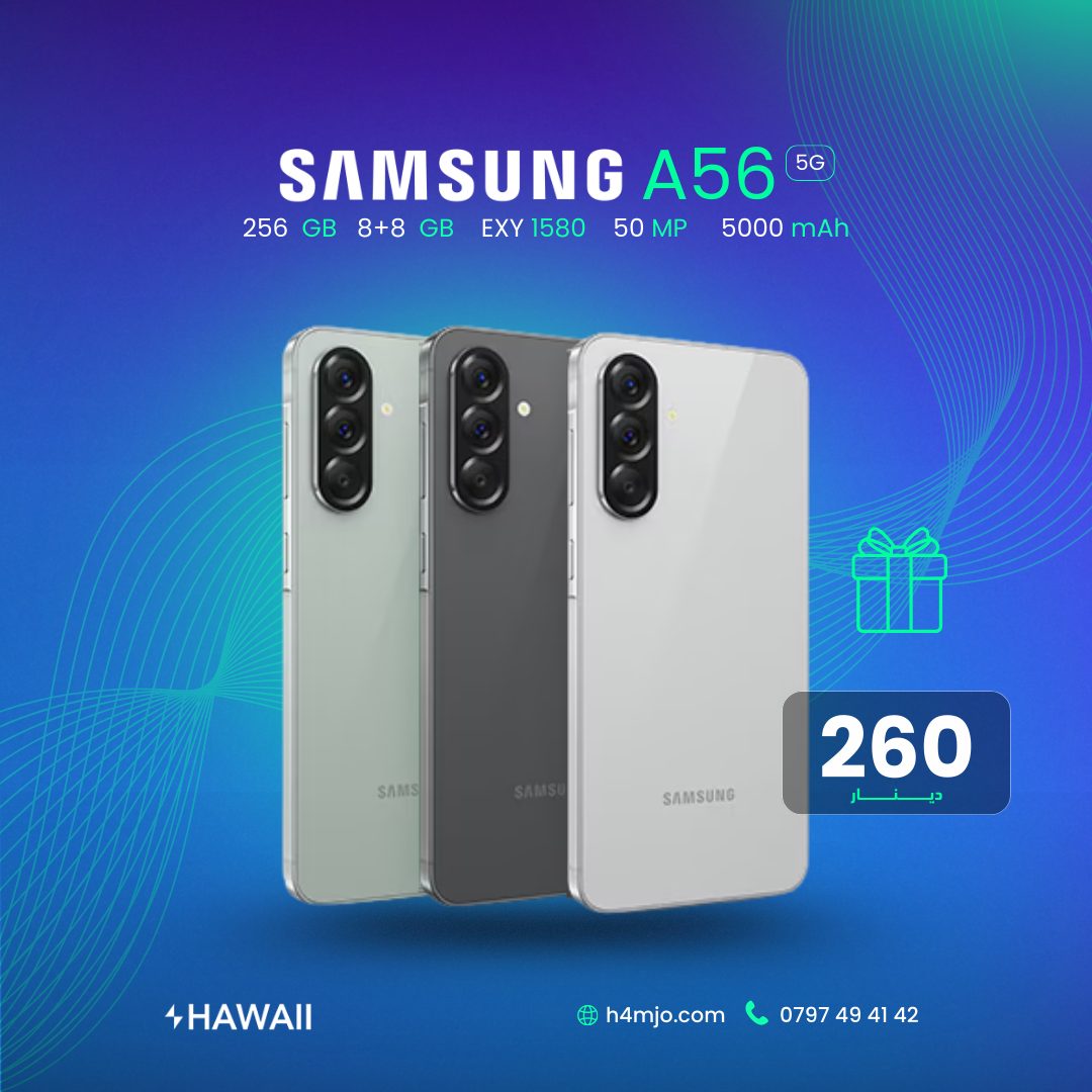 لا تفوّت فرصة امتلاك هاتف سامسونج A56 5G بأعلى المواصفات، المتوفر الآن بسعر 260 دينارًا فقط! ✨ هذا الجهاز مصمم ليلبي احتياجات المستخدمين الأكثر تطلبًا بفضل مواصفاته الجبارة: