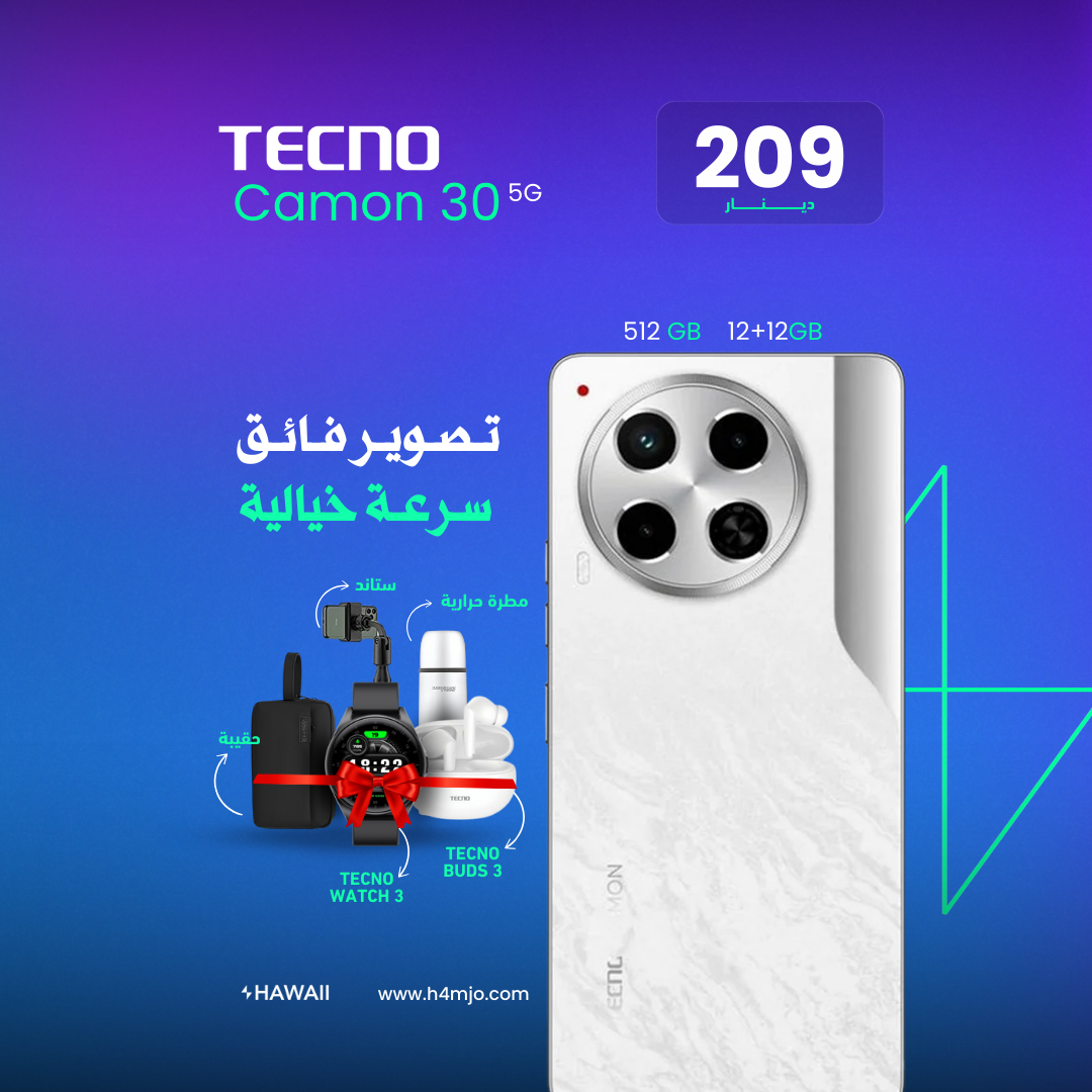 الكمية محدودة جدًا! سارع الآن واحصل على TECNO Camon 30 5G من H4WAII واستمتع بجهاز ذكي متكامل يلبي جميع احتياجاتك العصرية في التصوير والأداء.